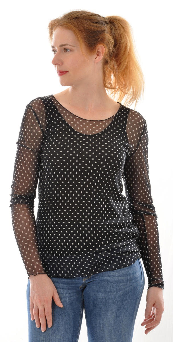 Netztüll Langarmshirt mit U-boothalsausschnitt aus feinem, transparentem Seiden- Netzwirk aus 100% Bio Seide.